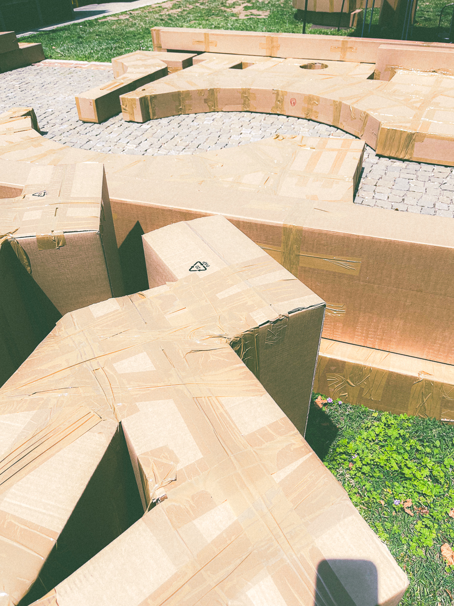 In the end, the temporary installation was demolished and all the carton boxes were dismantled correctly.